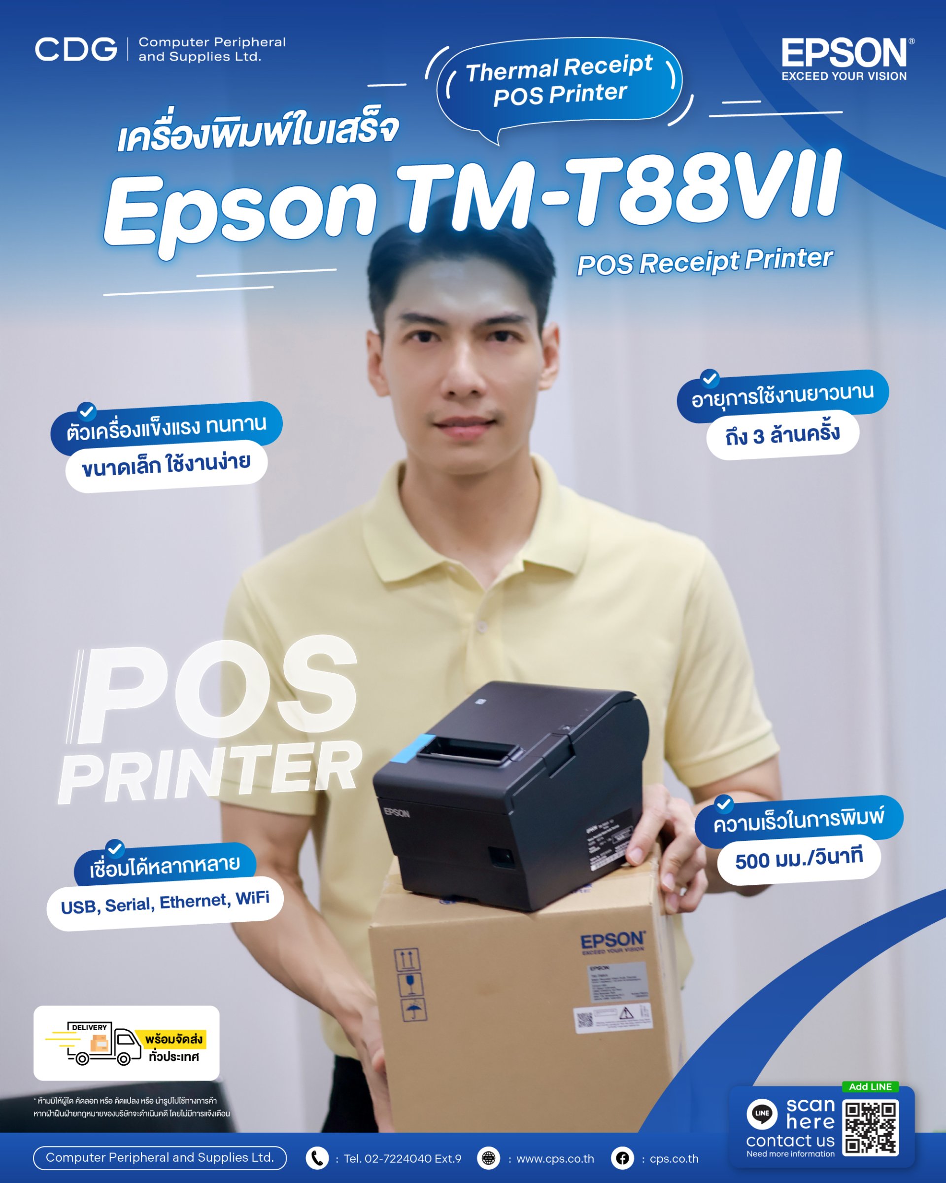เครื่องพิมพ์ใบเสร็จ Epson TM-T88VII Thermal Receipt Printer