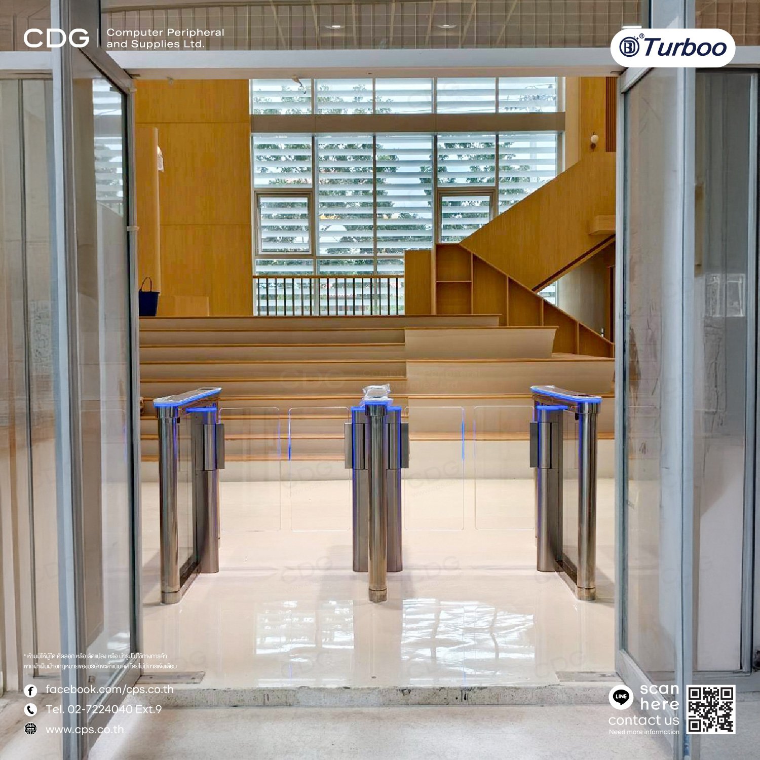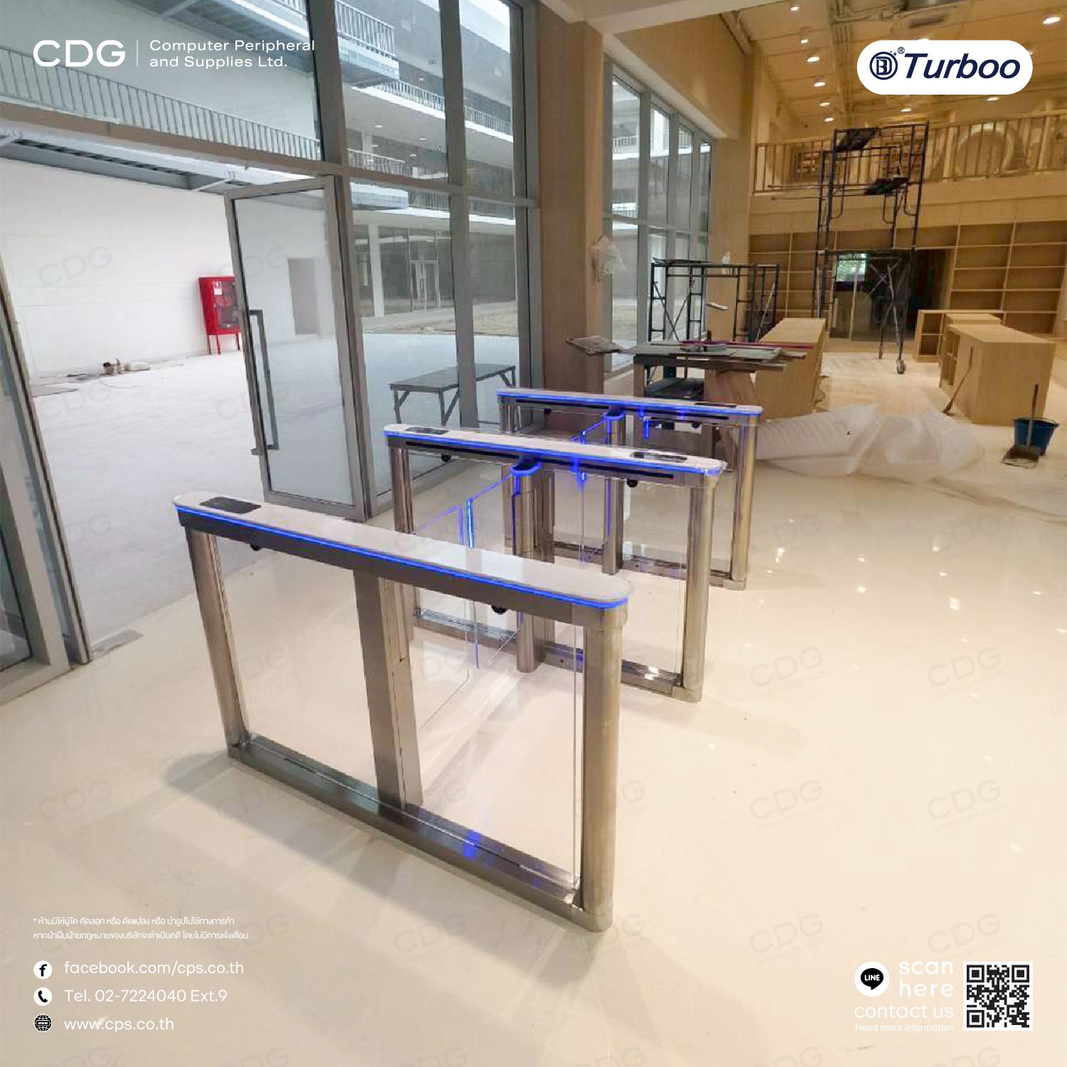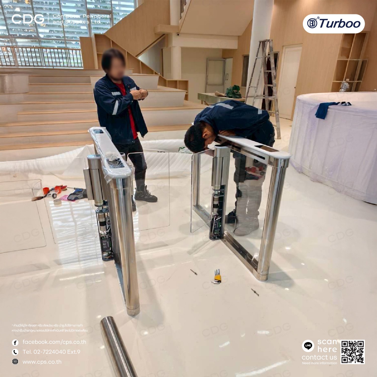 งานติดตั้งประตูอัตโนมัติ Slim Swing Gate (บานสวิง) รุ่น B307 ตรงประตูทางเข้า-ออก ห้องสมุด